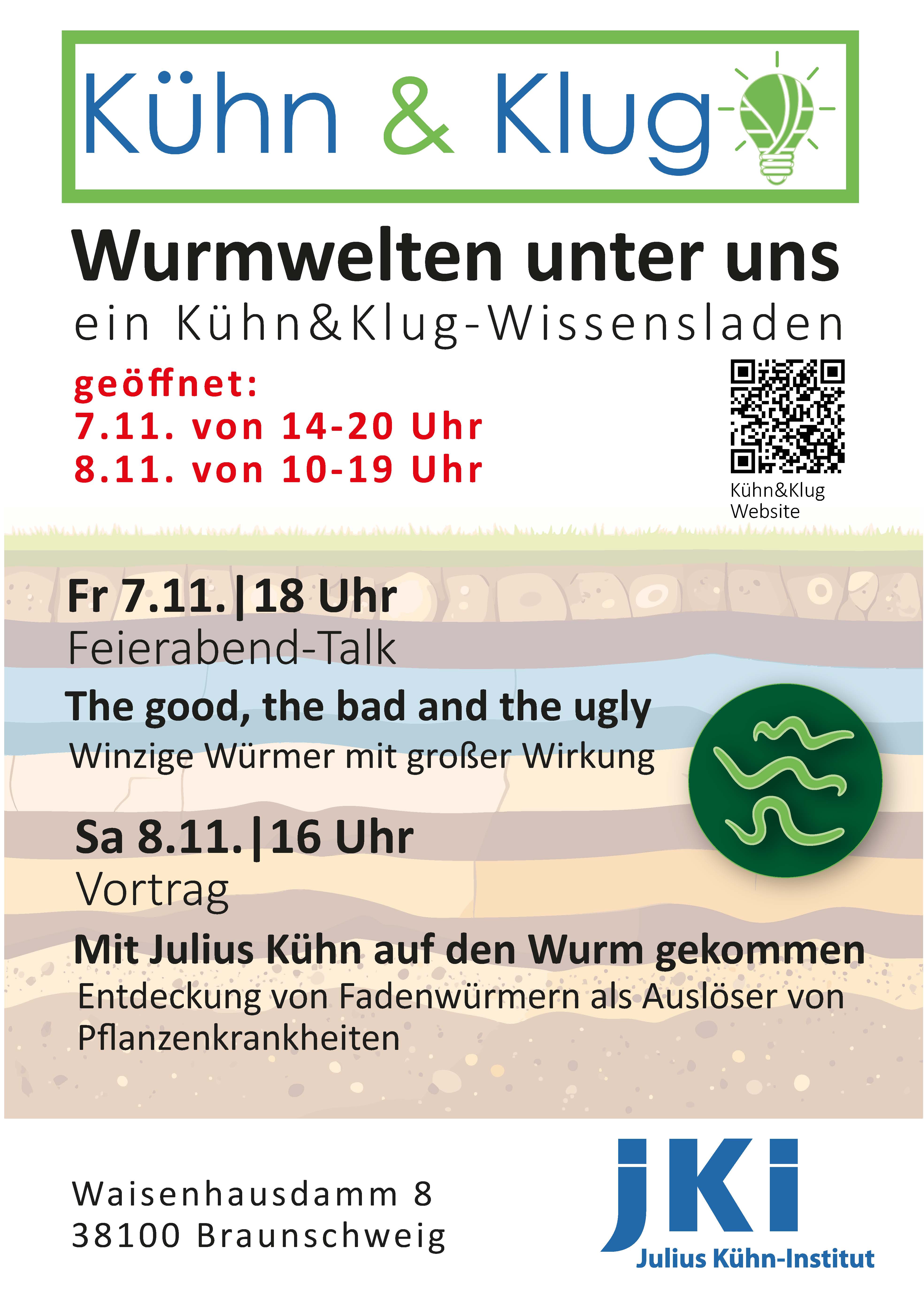 Plakatmotiv, welches den Feierabendtalk und einen Vortrag im "Kühn-und-Klug-Wissensladen" ankündigt.