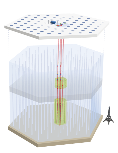 Anhang: Schematische Darstellung des unterirdischen Teils des IceCube-Experiments mit der Ergänzung des Upgrades (rot).