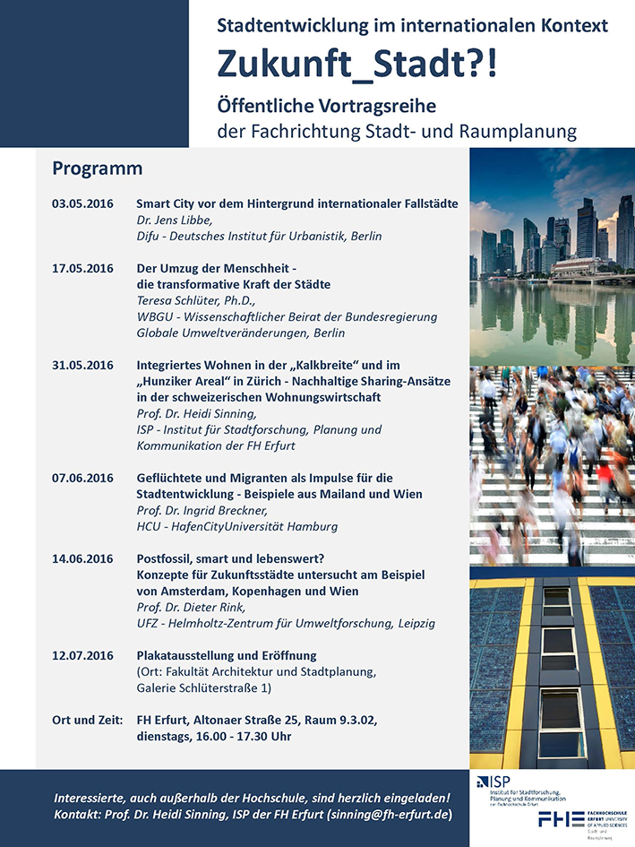 Anhang: Übersicht der Vortragsreihe "Zukunftsstadt" im Sommersemester 2016