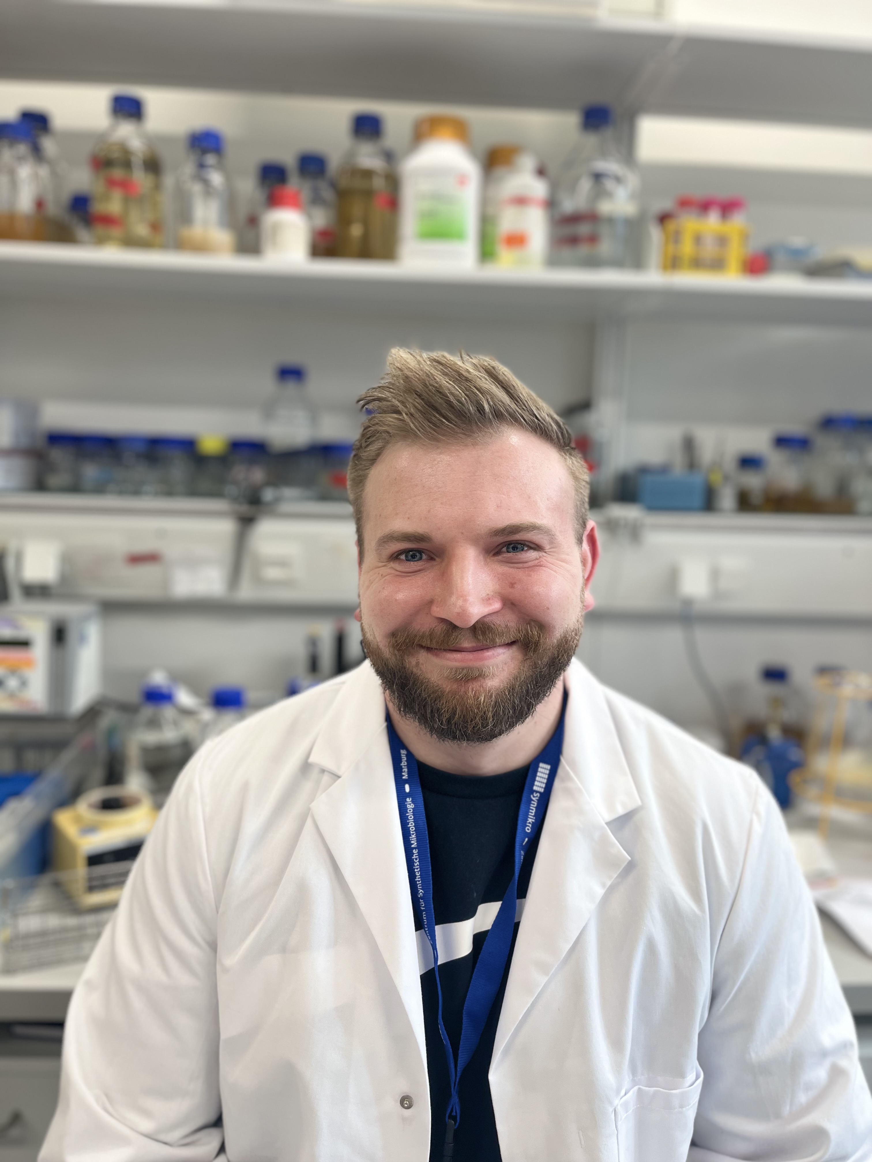 Bildtext: Nils Bäcker untersucht die sogenannten Peroxisomen, die in Zellen vielfältige metabolische Aufgaben erfüllen. Foto: Nils Bäcker