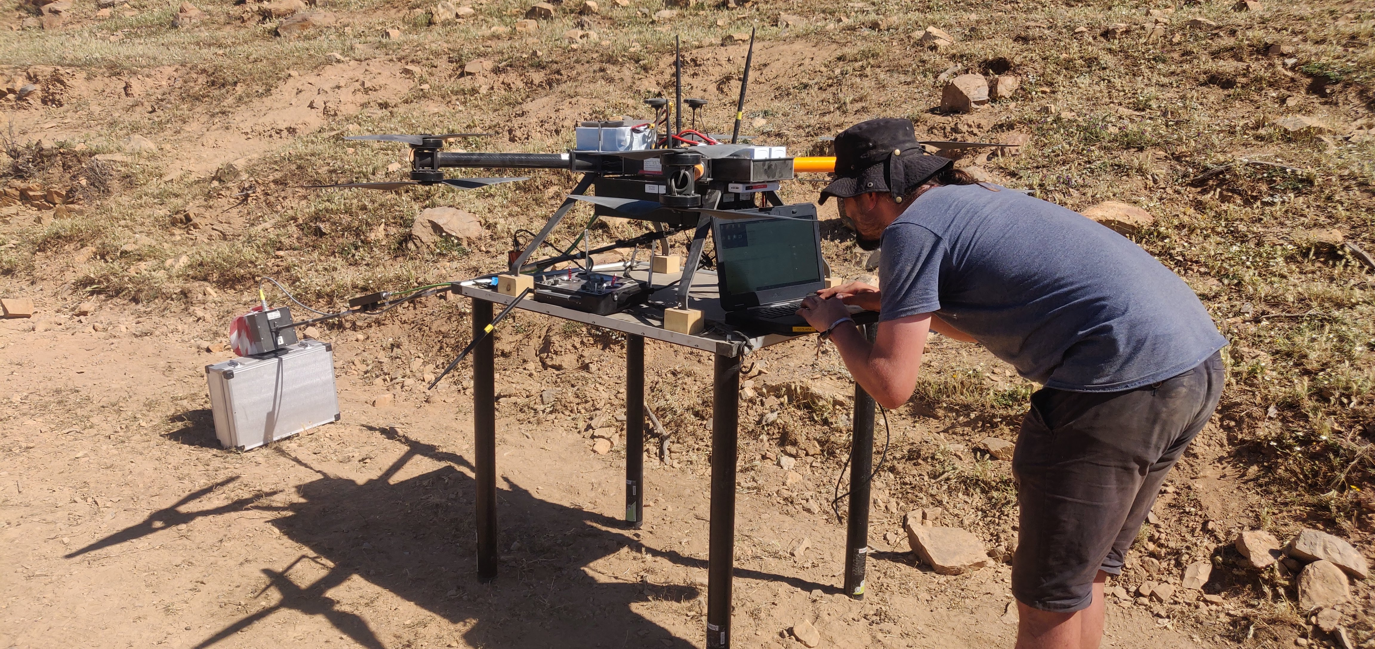 Attachment: Vorbereitung der Messdrohne für Erkundungsflüge.