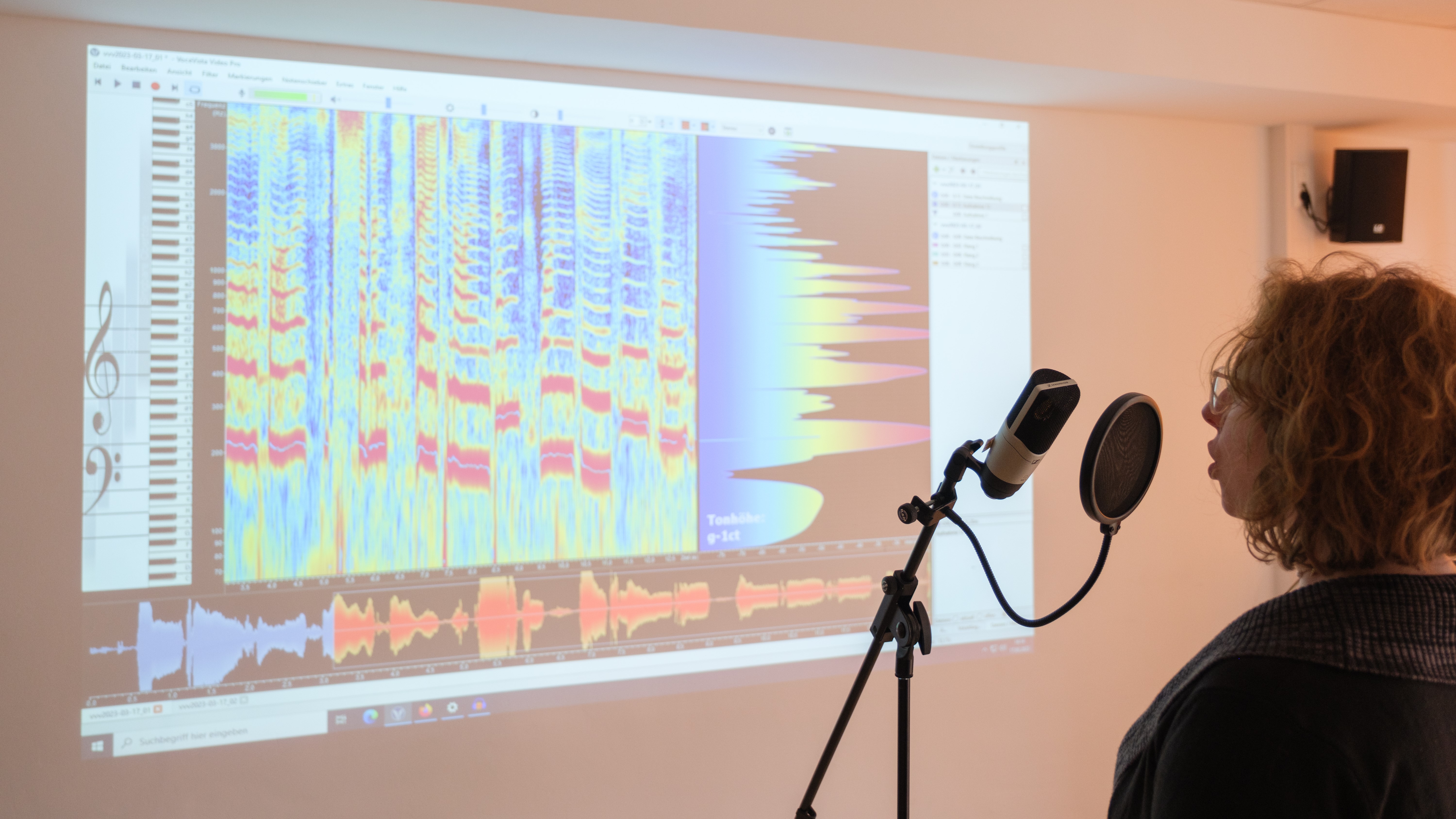 Bildtext: Stimm- und Sprecher*innenanalyse. Der Computer zerlegt das Stimmsignal in bestimmte Teilbereiche, die sowohl Mensch als auch Maschine interpretieren können. Foto: Anselm Wagner