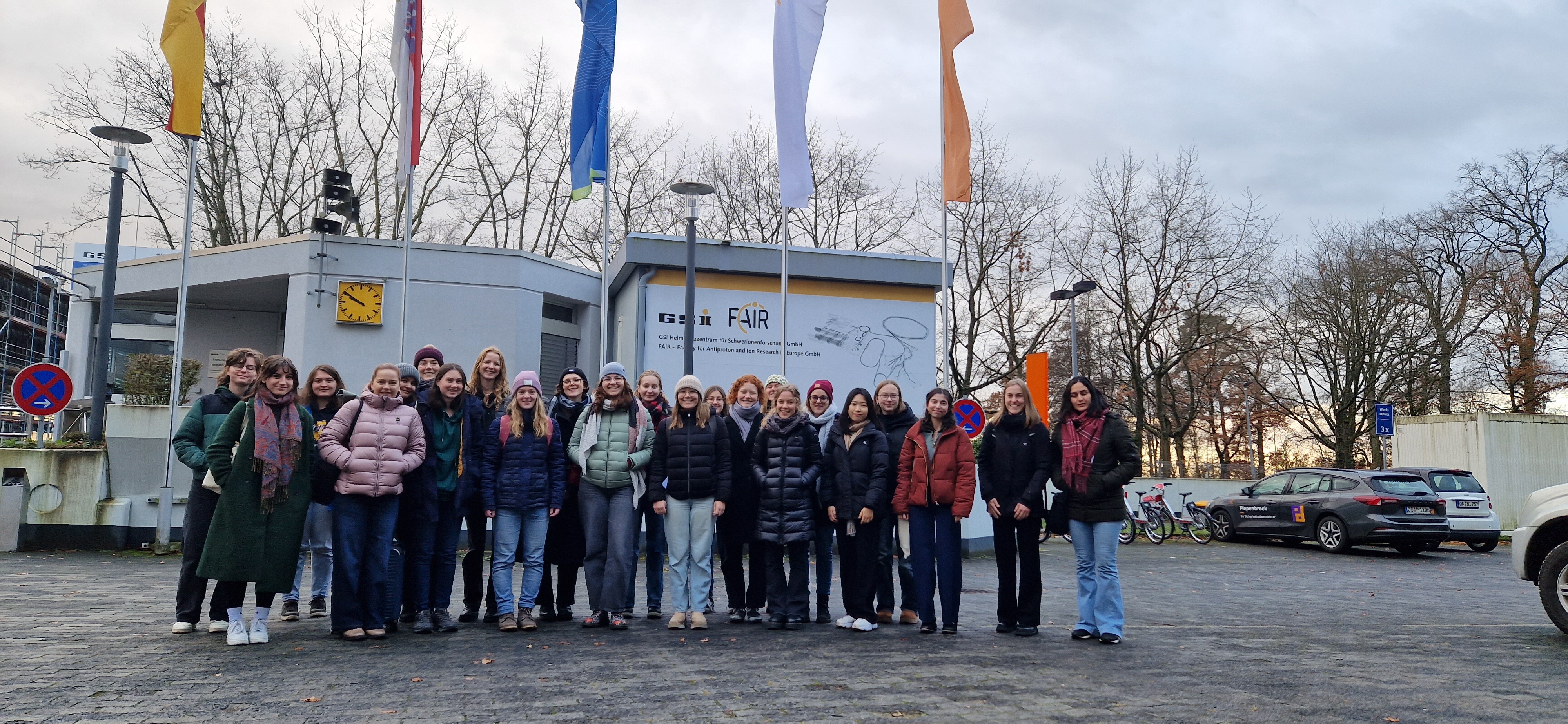 Am 6. Dezember 2024 besuchten 24 Frauen aus der Physik das GSI-Helmholtzzentrum in Darmstadt. Von Erstsemester-Studentinnen bis hin zu Doktorandinnen waren alle vertreten. Die Teilnehmerinnen erhielten interessante Übersichtsvorträge über die Forschungsarbeiten des Zentrums und die verschiedenen Beschleuniger der Großforschungsanlage. Am GSI lassen Forschende schwere geladene Atome aufeinanderprallen, um so mehr über den Aufbau der Materie zu lernen. Aktuell ist die Großforschungseinrichtung auch Großbaustelle, da mit dem Beschleuniger FAIR eine neue Anlage im Bau ist, die in den kommenden Jahren in Betrieb gehen soll.