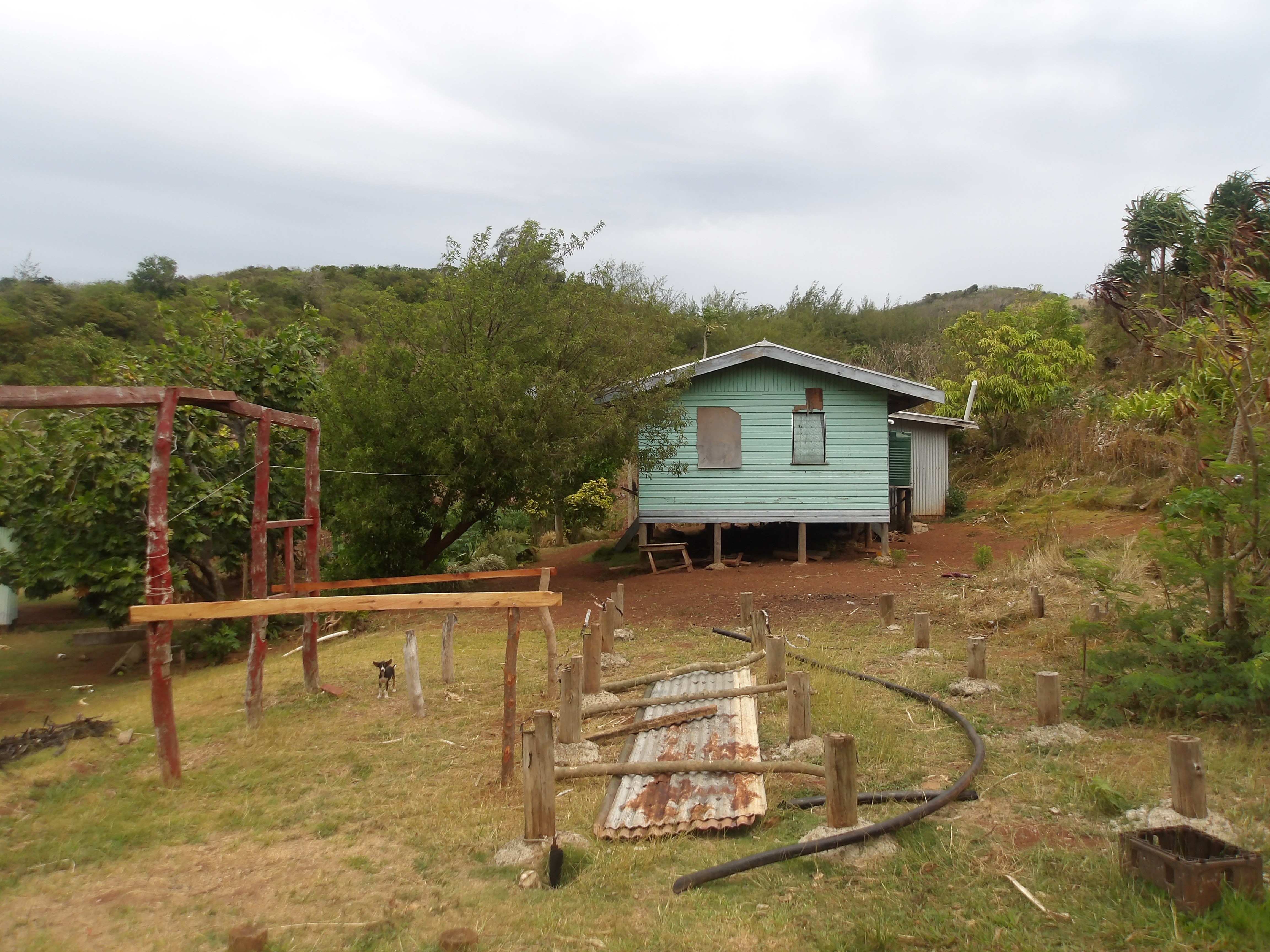 Bildtext: Der Klimawandel macht Land und Leuten auf den Fidschi-Inseln immer mehr zu schaffen: Im Vordergrund ein durch Sturm zerstörtes Haus, dahinter ein Neubau auf der Insel Denimanu. Foto: Ann-Christine Link